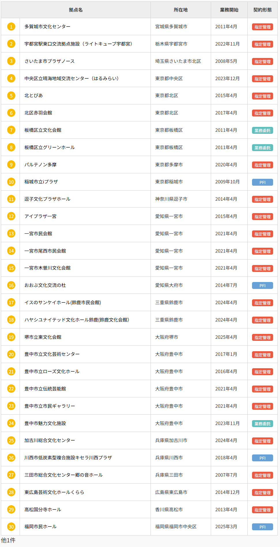 文化・芸術施設の取扱い 計 31 拠点